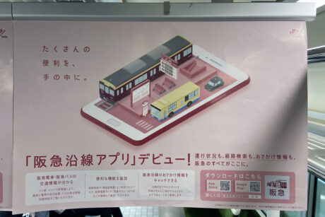 阪急電鉄では「たくさんの便利を、手の中に。」のサブタイトルで阪急沿線アプリの配信が開始されている。
