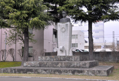山本五十六記念館前から南南西を向くと、駐車場(私有地)の先に山本五十六海軍元帥の胸像の背が遠望できるので、位置は解りやすい。