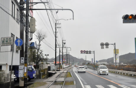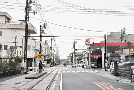 鳴谷電停からの西向き(伊野電停方)の眺め。