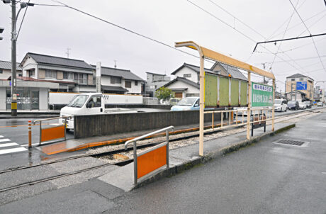 そして上写真の撮影地点を、東側50mほど先の場所から西向きに眺めた光景。あえて再度しつこく記させていただくが、この項におけるココまで紹介している北山電停の写真の風景は、2021年3月25日の新線路への切り替えにより、もぉ見られない景色なことを申し添えておく。