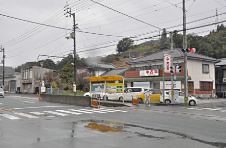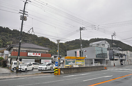 生活道路(旧松山街道)と国道194号松山街道との合流分岐交差点部分を西向きに眺めたトコロ。