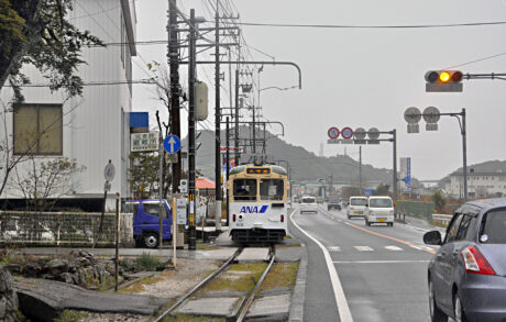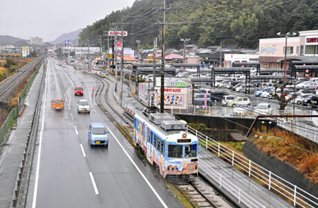 伊野駅前電停-北内電停 間は路肩軌道らしい情景の宝庫