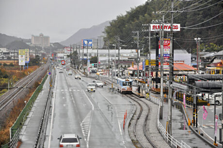 まずは、前回その1においてJR伊野駅と伊野停留場との位置関係を記している伊野駅前電停から眺めてみよう。
