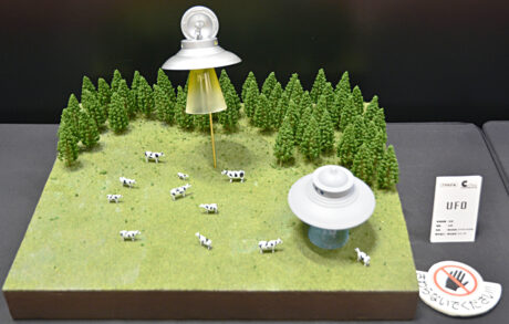 牧場に現れたアダムスキー型タイプのUFO。発売予定のキットにはドコまでのパーツが入っているのかは気になるトコロ。 コチラは空飛ぶ円盤風のUFO。 この「UFO」をクラウンモデルが展示したコンセプトは「かつて『お化けシリーズ』などのオリジナル商品を展開していた『クラウンモデルのプラモデル』を、令和の時代に新たな形で復活!」なのだそーだ。