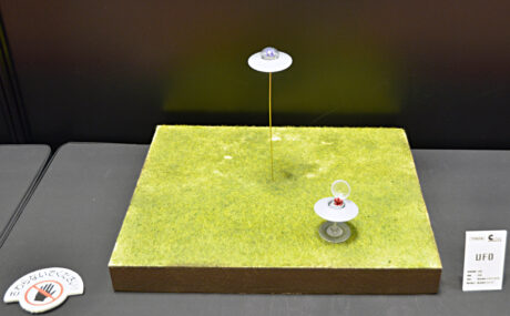 手前がMINIRAMA~NEXT~大阪×東京。奥が箱庭風ミニラマ旅シリーズ。 そしてその隣に展示されていたのが「UFO」シリーズ(参考出品)。