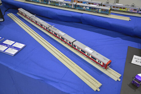 KTMブースの展示車輌で、すべて1/80HOゲージ16番スケール。奥は、伊豆箱根鉄道7000系YOHANE TRAINとOver The Reinbow号。 ということではあるが、筆者的なホビーショー名物となりつつある、訪れた時に展示模型車輌が何処かに遊びに行ってしまうという現象が、このKTMにおいて起きてしまった(泣)。