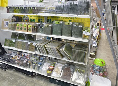 takedaの情景素材展示スペースの全景。 まずはジオラマ素材をご紹介。