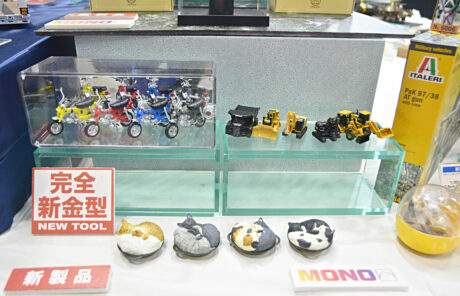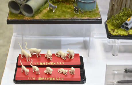 M.Sモデルスブースの接着剤と塗料関連の展示スペース。 そして「猫好きが認めるネコ」シリーズ。