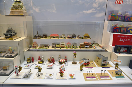 クラウンモデルは、エアー&ガスGUNで有名なメーカーで 、この度もそれらの玩具GUNがメインに出展されていたけれども、そのブースの一角にMINIRAMA~NEXT~大阪×東京と、箱庭風ミニラマ旅シリーズを展示していた。