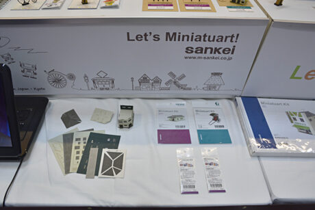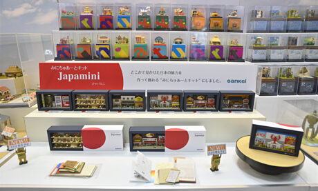 下半分が、「Japamini」のラインナップ。 組み立て前の商品の中身も展示されていた。