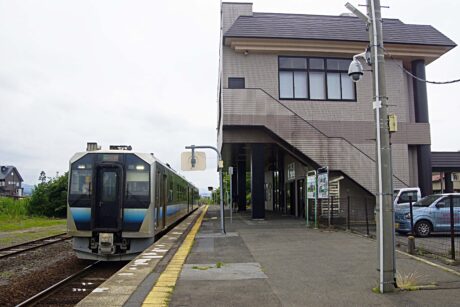 JR五能線と聞くと、日本海岸沿いの岩場に沿って敷設された単線非電化路線のイメージが強いが、青森県側の 川部-鯵ヶ沢 間はコチラも単線非電化であるけれども、田園地帯を走り、南西方(区間にもよります)にはその田園の先に岩木山(津軽富士)が眺められる車窓風景が続いている。その真ん中付近に位置するのが、津軽鉄道の乗り換え駅として有名な五所川原駅だが、木造駅を最寄りとするつがる市は、この五所川原から西に5kmほどの場所にある。