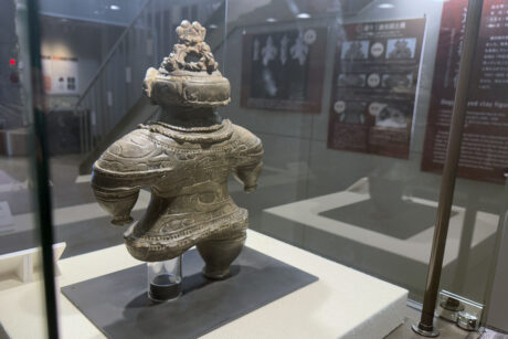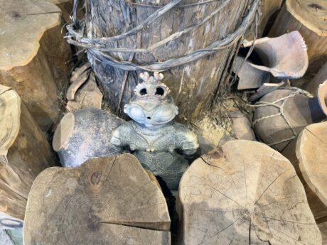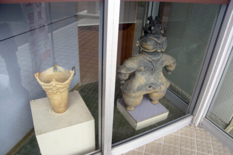 1F奥に展示されている遮光器土偶のレプリカ。冒頭に掲載の写真と同じ土偶。その右前。