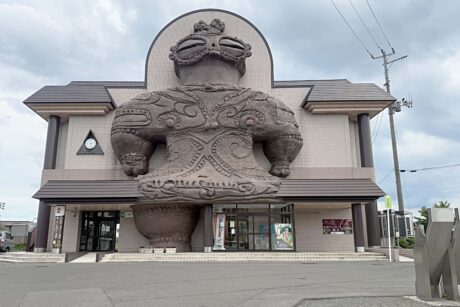 木造駅は亀ヶ岡遺跡から出土した遮光器土偶をモチーフにしているとのことで、元来なら木造駅から北北西約10km地点にある「亀ヶ岡石器時代遺跡」を訪ねるべきであろうが、駅から徒歩圏内ではないとの観点(本サイトにおける鉄道モノ以外訪問基準の筆者ルールです)から目指すことはせず、駅から歩ける範囲内に、それなりの資料があるであろう展示施設を探したトコロ、「つがる市縄文住居展示資料館 カルコ」が浮かび上がってきた。