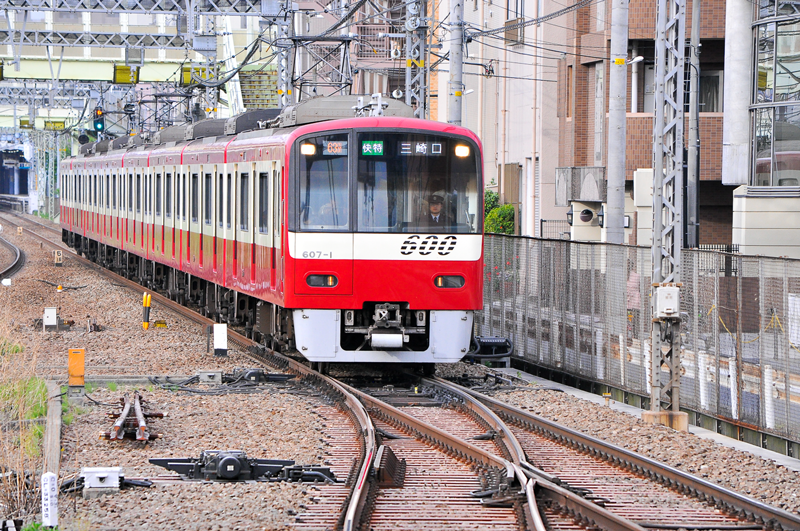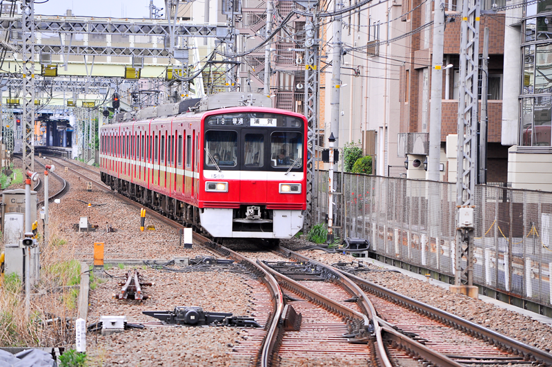 さて、このノーズ可動式ポイントが、在来線でも使われているのをご存知だろうか。そう、北越急行ほくほく線と成田アクセス線の一部で使用されていることは、ある程度知られている。しかしこれらは高速列車を走らせるために高規格で建設されている路線のため、この2線では敷設の構造上間近で見ることは難しい。ところが、そんな特殊なポイントが間近に見られる場所がある。それが京浜急行本線 生麦駅で、下り線の前後に設けられている。