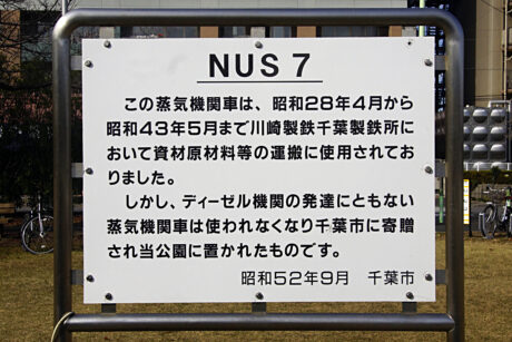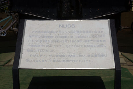 この蘇我駅の東北東300mほどの地点にある菰池公園に保存展示されているのが、産業用SLのNUS6号になる。