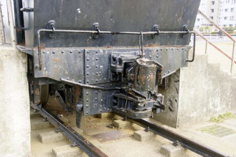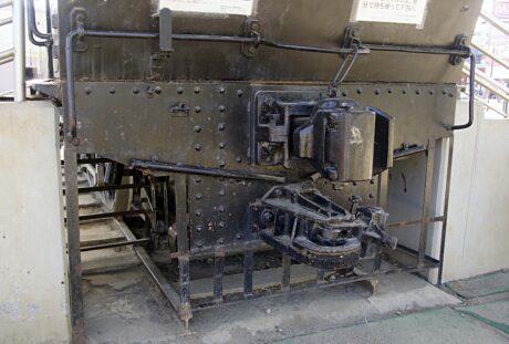 MUS7号はNUS6号と同様に機関室へ立ち入るためのコンクリートの階段が設置されているが、展示用の屋根がないので離れて撮れるため、この階段による撮影でのストレスはかなり少なかろう。