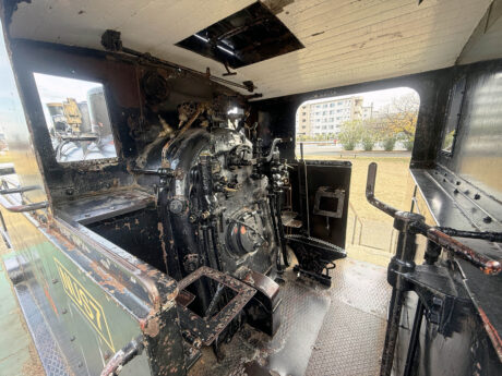 NUS7号は前面(煙突側)が北東を向いた向きに置かれて保存展示されている。