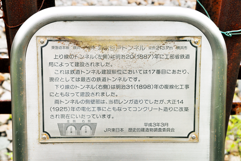 では、それならば日本で現在も使用されている現役最古参の鉄道トンネルはどこかというと、JR東海道本線 横浜-戸塚間にある清水谷戸トンネルで、建設順位では17番目にあたり、1887年(明治20年)に竣工している。