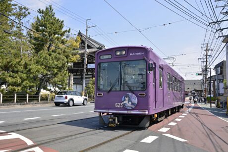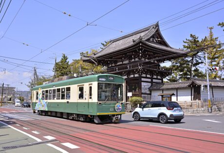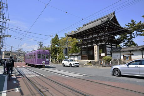 嵐電の広隆寺仁王門前を通る路面電車は、撮影名所として昔から有名だが…
