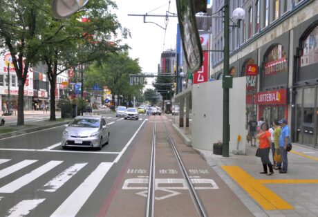 記事冒頭にて、さらに「札幌市電 西4丁目-すすきの 間もホボ同時期に路肩軌道なことを思い出した…」と記しているが、同区間の軌道は路肩を通っているけれども、道路の車線の左右に離れて線路が敷設されているため、電車はクルマと同じ方向に走るので、やはり筆者の頭の中からスッカリぶっ翔んでいた(言い訳)。
