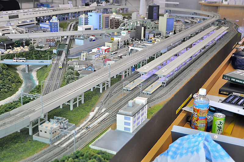 「家にも組み立て式のレールやストラクチャーは山ほどあり、それを組んで車輛をシャーシャー走らせるのも楽しいけれど、やはり組む手間、分解する手間を考えると、レンタルレイアウトに来てしまいます。これは車輛を運ぶ手間を差し引いてもレンタルレイアウトに分がありますね。また、レンタルレイアウトなら見学者もいるため、知り合い以外にも新規の車輛を見てもらえるチャンスがあり、気合いも入ります。そして何より、その後の飲み会が楽しいのです。同じ趣味を持つ者同士という、仕事と関係なく付き合える仲間と会って語れる場があるというのは最高ですね。なので、月に1度くらい、仲間うちでこのような運転会を開いています。」