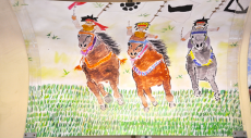 [場所] JR常磐線 原ノ町-相馬 2015年6月21日に、JR常磐線 原ノ町-相馬 間を走る701系電車の車内で『甲冑列車に乗ろう!!』と題したイベントが「相双振興局」により開催された。 それに合わせて車内の広告スペー … 続きを読む 電車内で開催されていた野馬追の絵画展