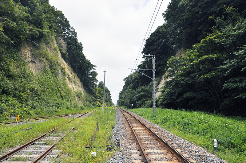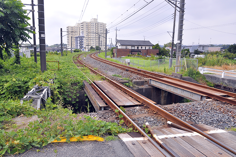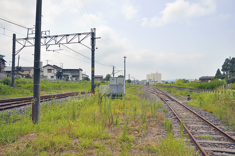 上の踏切からの反対側を眺めたところ。右の柵の外側の草むらのさらにその右にかつてはターンテーブルがあったとのことだ。