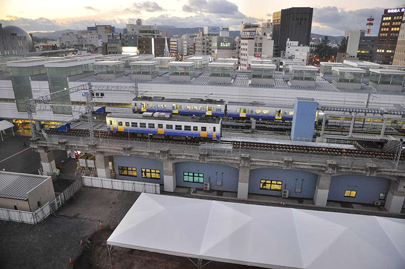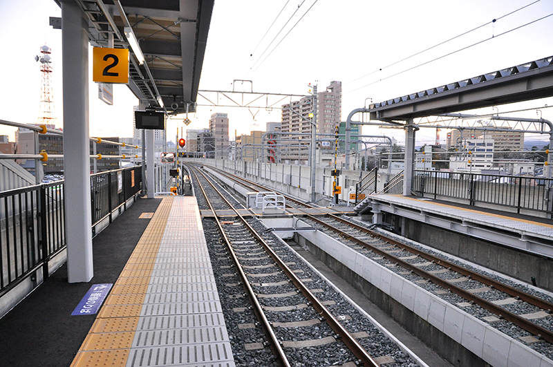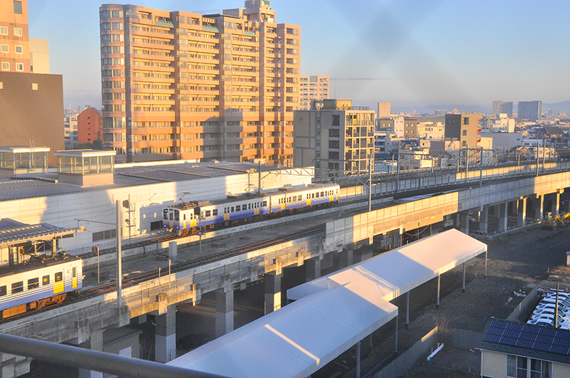 高架になる えちぜん鉄道 福井駅の新駅の完成は2018年(平成30年)に開催される福井しあわせ元気国体の年を目指しているとのこと。現在、周辺からは埋蔵文化財が出てきており、完成年はその発掘調査の進捗状況にもよるが、いずれは自社の高架線路に切り替わるわけで、えちぜん鉄道が新幹線の高架線を走っているうちに乗っておけば、その事実を後世に語れる歴史の目撃者になれるということではなかろうか。