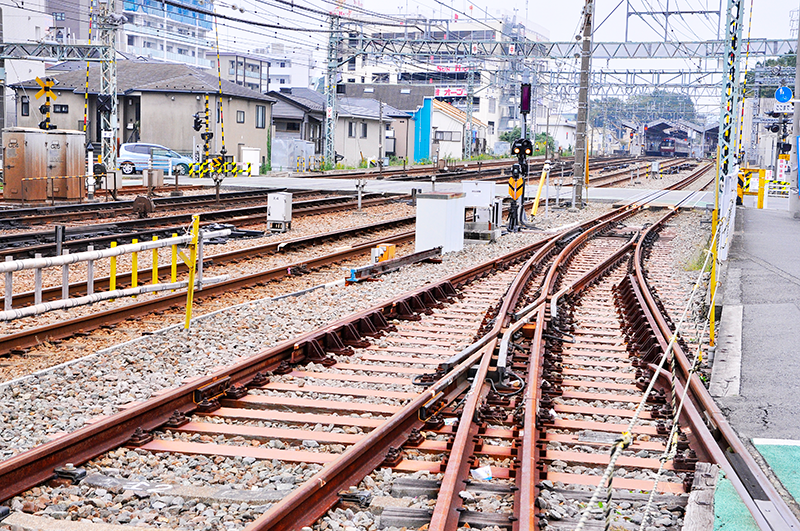 そして下の写真が、金沢八景駅の金沢文庫駅方にある京急線と総合車両製作所横浜事業所専用線の分岐部分。