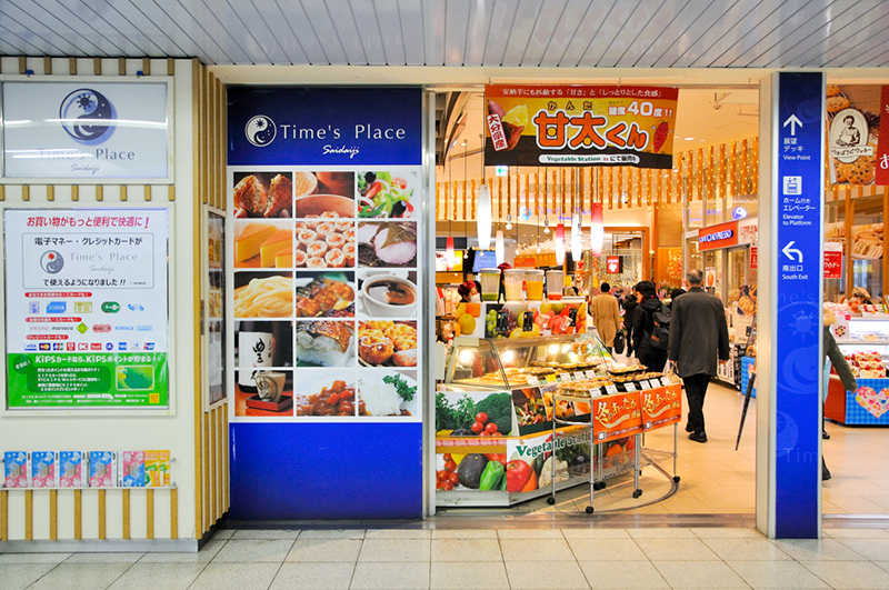 ショッピングモール“タイムズプレイス西大寺”は各プラットホームから階段やエスカレータ・エレベータなどを上がった2階に位置している。