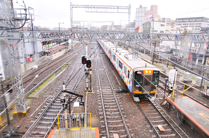 ちなみに、6番線の難波方面への電車の発車は朝夕に数本あるのみのため、記者の滞在中にはなかったので、その写真はない。また、雨天時におけるガラス柵越しの撮影のため、写真がヨレヨレなのもお許し願いたい。