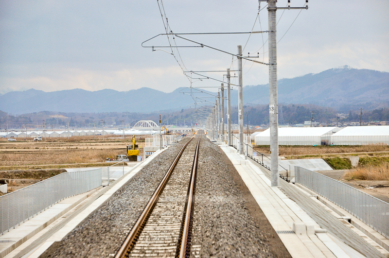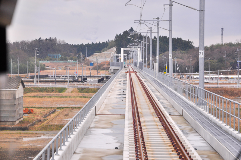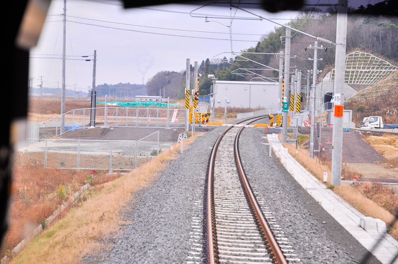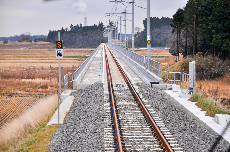 この運転再開区間のうち、駒ヶ嶺-浜吉田 間はルートを内陸側に移設して新たに造り直された、まさに新規の線路ともいえるので、どんなモノかと運転再開直後の2016年12月14日に乗ってきた。この時に撮った写真を、以前の2015年7月14日に当サイトへアップした『JR常磐線 不通区間を訪ねてみた』(←その記事はこちらをクリック)に掲載した建設中の写真も一部に織り交ぜてお見せしていこう。