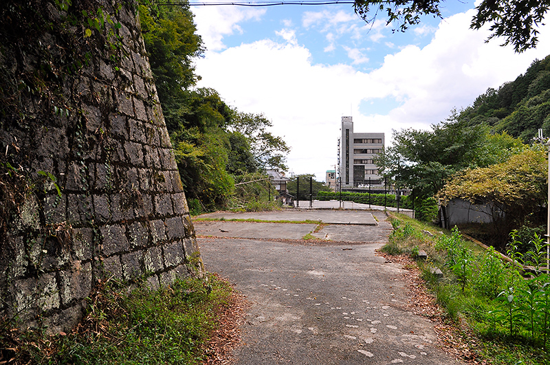 膳所-京都 間が、現在の東海道本線から南に大きく回るように敷設された別線であった頃の名残りとして遺るもうひとつの遺構『逢坂山隧道』の大津駅側坑門跡も、せっかくなので眺めていこう。場所はJR大津駅の南西700m程のところにあり、国道1号と国道161号が合流するあたりにあるので、解りやすい。