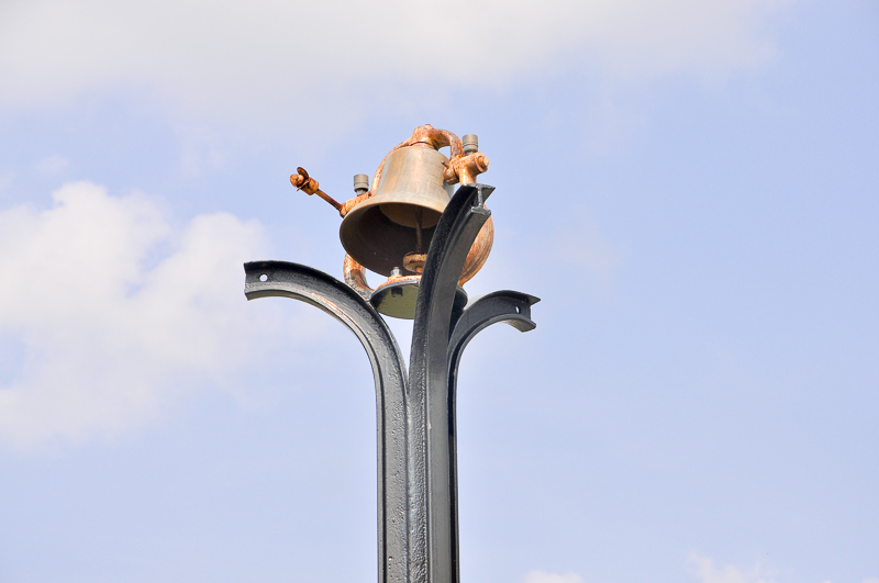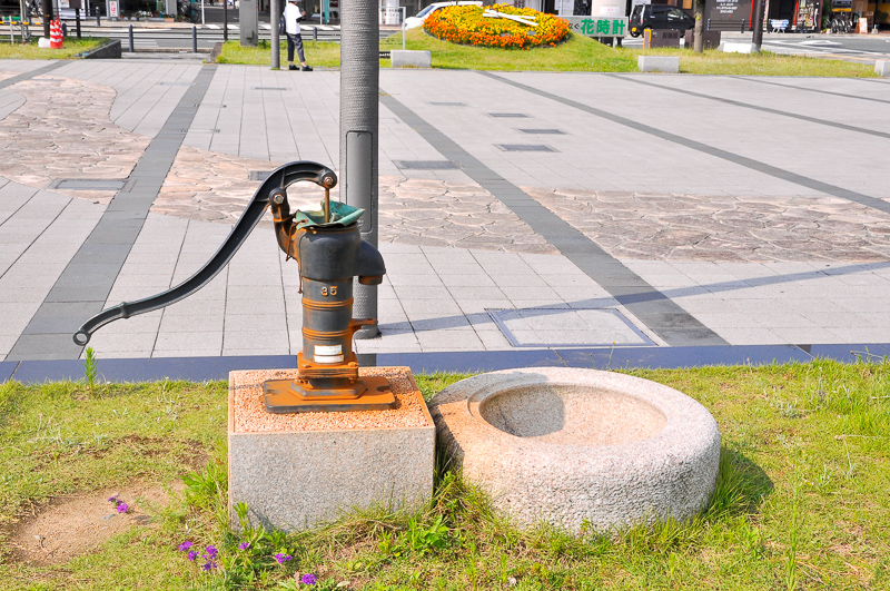 そこで北口側に抜けてみるが、鉄道系アートは見あたらない。あるのは、「福知山踊り像」「福知山名物を描いた時計塔」「花時計」「河川情報掲示板」「区画整理事業の記念碑」など。まぁそれなりのオブジェやモニュメントといったところだろう。そんな中、もうひとつ、どうにも理解不能なオブジェがひとつあったので、下に載せておこう。