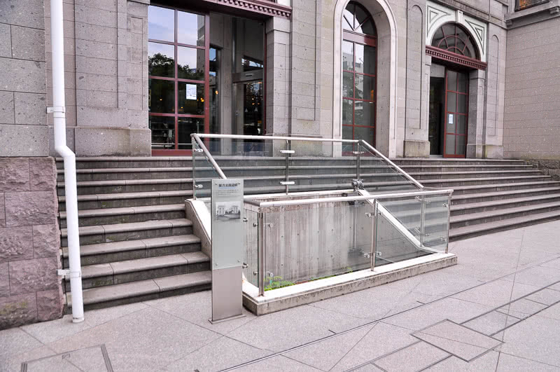 旧新橋停車場復元駅舎の北東側にある「鉄道歴史展示室」の入口。