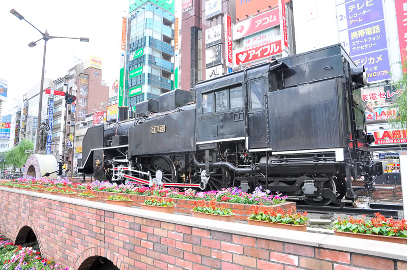 このSLは、鉄道100周年記念にあわせ、1972年に地元商店街や町会の活性化を目的として展示された保存機で、いまや西口のランドマークといっても過言ではないだろう。一緒に腕木信号機も展示されているのだが、これがまたピッタリなアクセントになっているのも良い。