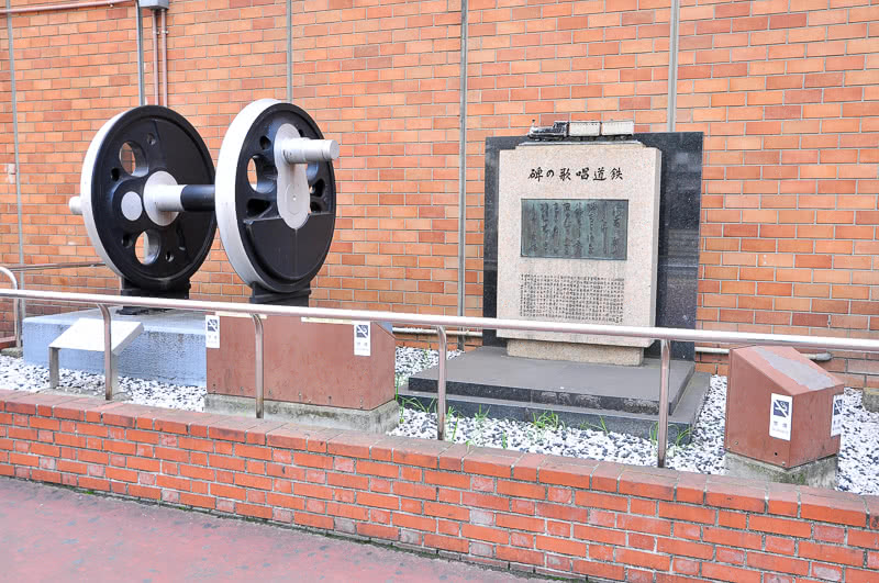 汐留口には動輪と歌碑