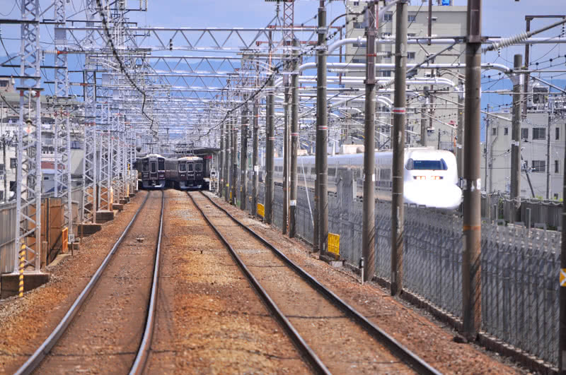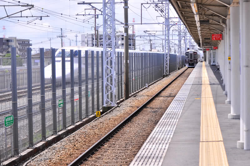 新大阪駅からJR東海道新幹線の上り列車に乗ると、22kmくらいの地点で左から標準軌の複線線路が寄り添ってきて約4kmの間並行する。この線路が阪急京都線なことは、阪急電車が好きな方や関西の方ならご存知のことと思う。また電車好きの方ならば、東海道新幹線に乗車した時、この区間で阪急電車と並走するかも知れないとワクワクするのではないだろうか。