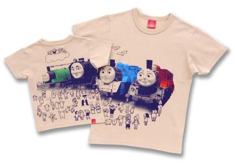 大井川鐵道きかんしゃトーマス号×OJICOコラボレーションTシャツ。子供サイズ3,888円(税込)~、大人サイズ5,400円(税込)~。色は白・オレンジ、そして大鐵でしか手に入らないベージュ。(c)2018 Gullane[Thomas]Limted