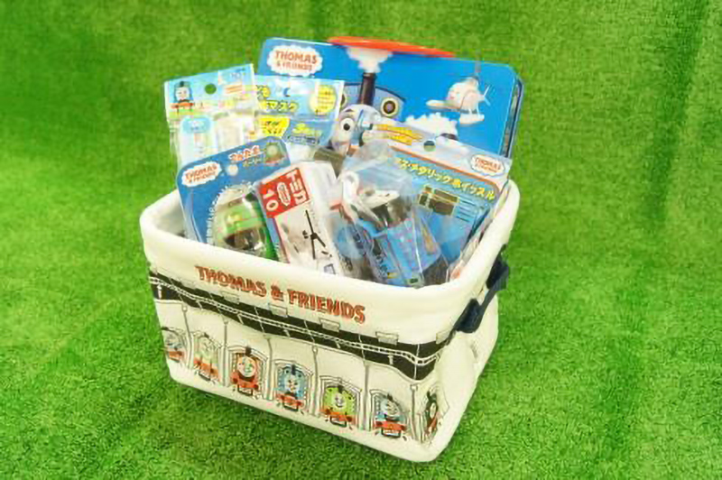 大井川鐵道オリジナルトーマスpilierおかたずけBOX。幅23.0cm、高さ14.0cm、奥行18.0cm、綿100%。1,944円(税込)。2018年3月に発売した南海ズームカーテイッシュBOXカバー(←その記事はココをクリック)でコラボした(株)ヘミングスとの共同企画。写真は使用例。BOXの中身は別売。(c)2018 Gullane[Thomas]Limted