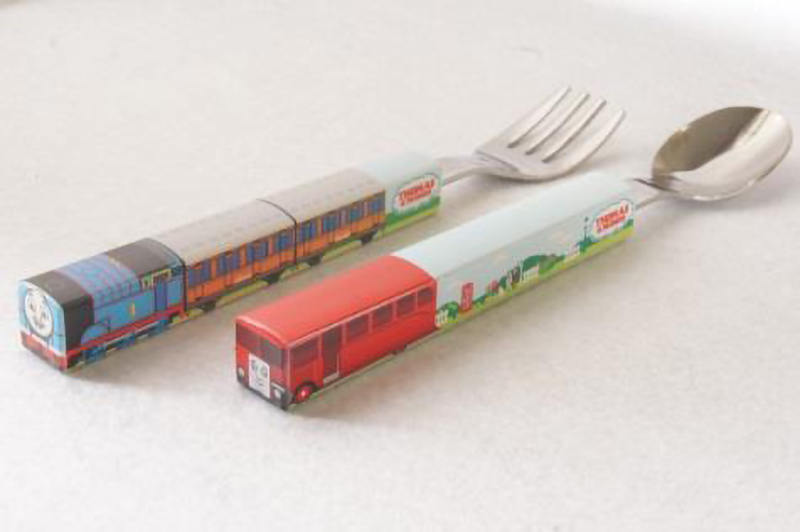 トーマススプーン&フォーク。各1本、計2本。1,296円(税込)。バスのバーティータイプのスプーンを購入できるのは大井川鐵道の各売店のみ。(c)2018 Gullane[Thomas]Limted