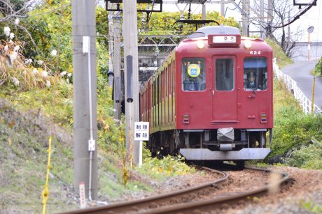 トンネルが短く、上の丘が低いのが天井川隧道の特徴…と前回に記したが、この般若谷川トンネルも同じ要素を持っている。写真は北(大垣)方の坑門で、タイトルとの連続写真(こちらのが先ではあるが)になる。電車は620系D21編成621F。天井川については、以前の2016年1月6日アップ「日本で最初に作られた鉄道トンネル石屋川隧道を訪ねてみた」の記事中でも説明しているので詳細はそちらに譲るが、まぁ、地平レベルより水面が高い河川と言えば理解していただけるだろう。